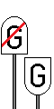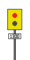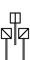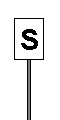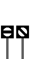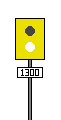 Repetidor de Sinal Principal. Informa o Agente de Condução do estado do sinal principal de saída a jusante quando, do local de paragem habitual, não é possível avistar o mesmo. Quando fechado apresenta uma barra horizontal, sendo que a mesma toma a posição obliqua quando aberto. |