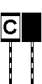 Indicador de estação em regime de Estação Temporária. É apresentado sob a forma de um alvo branco com um "C" caso a estação se encontre sem interferência para a circulação (desguarnecida) ou sob a forma de um alvo de cor preta se a estação se encontrar com interferência para a circulação (guarnecida). |