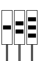 Indicador de Posição de Agulha Talonável. As faces dotadas de um traço obliquo indicam que a posição da agulha dá continuidade ao ramo desviado.A face dotada de traço vertical indica que a posição da agulha dá continuidade ao ramo directo. |